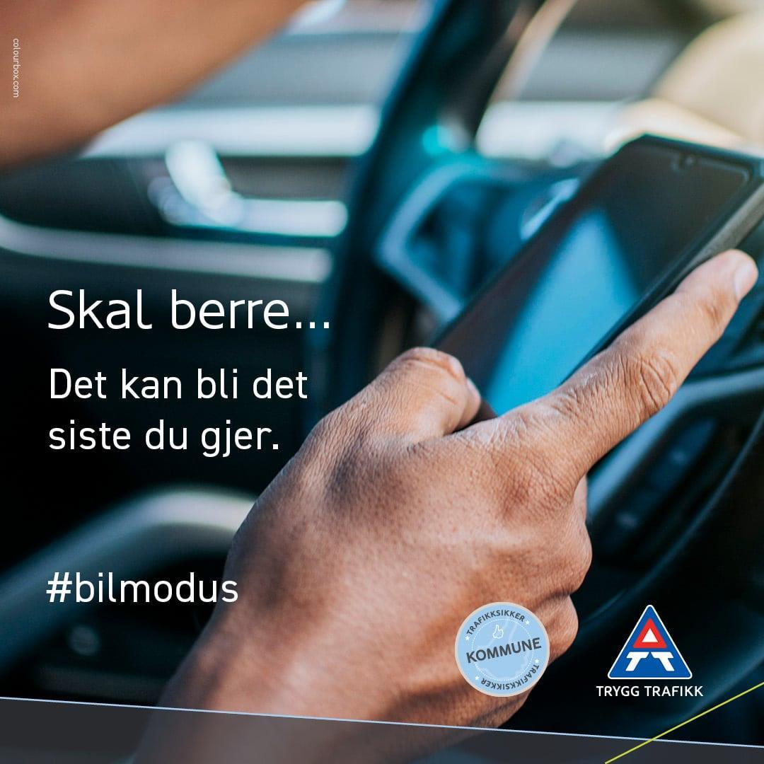Gode retningsliner for tryggare ferdsel, reddar livSkal berre…. Det kan bli det siste du gjer. Uoppmerksemd, særleg når det gjeld bruk av mobiltelefon, er en medverkande faktor til trafikkulykker.Eit enkelt varsel kan vere nok til å distrahere deg i hundrevis av meter.Aktiver bilmodus på smarttelefonen og be andre om å følgje ditt eksempel, da bidreg du til å senke antallet trafikkulykker. Publisert 05.11.2025 12.31 Sist endra 05.11.2025 12.31