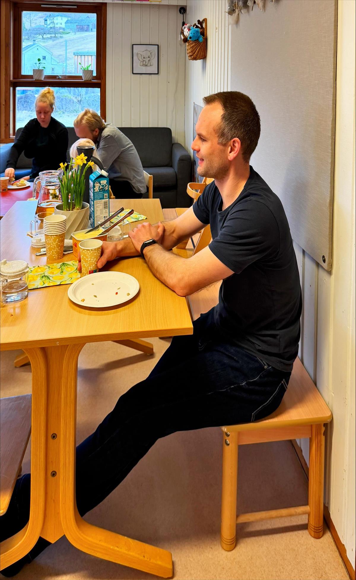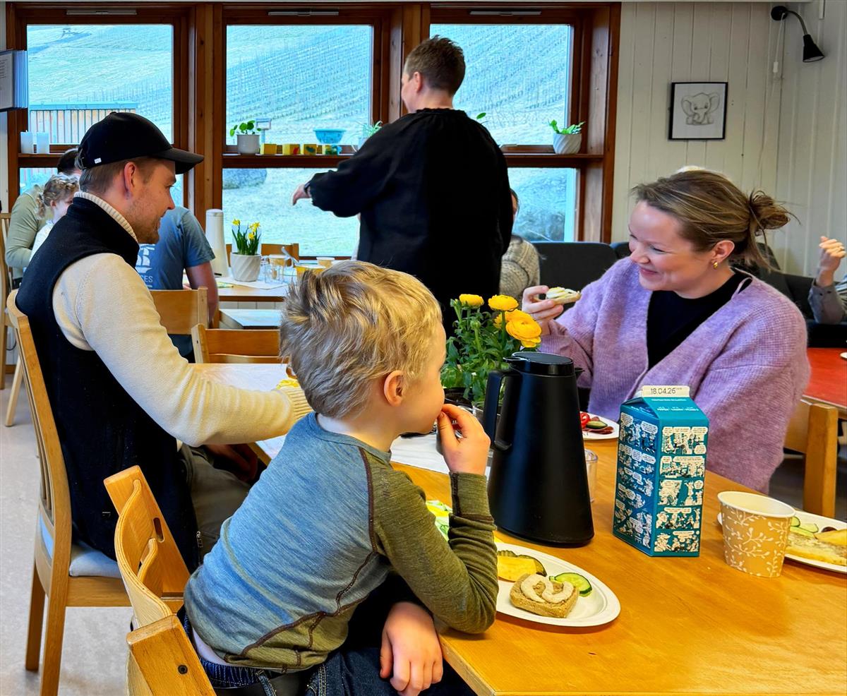 Frukosten er mellom 07.30 - 09.00 og har eit særs godt oppmøte. Årets påskefrukost vart fordelt på 26.03 og 27.03. Stemningsbileta er frå den eine småbarnsavdelinga.